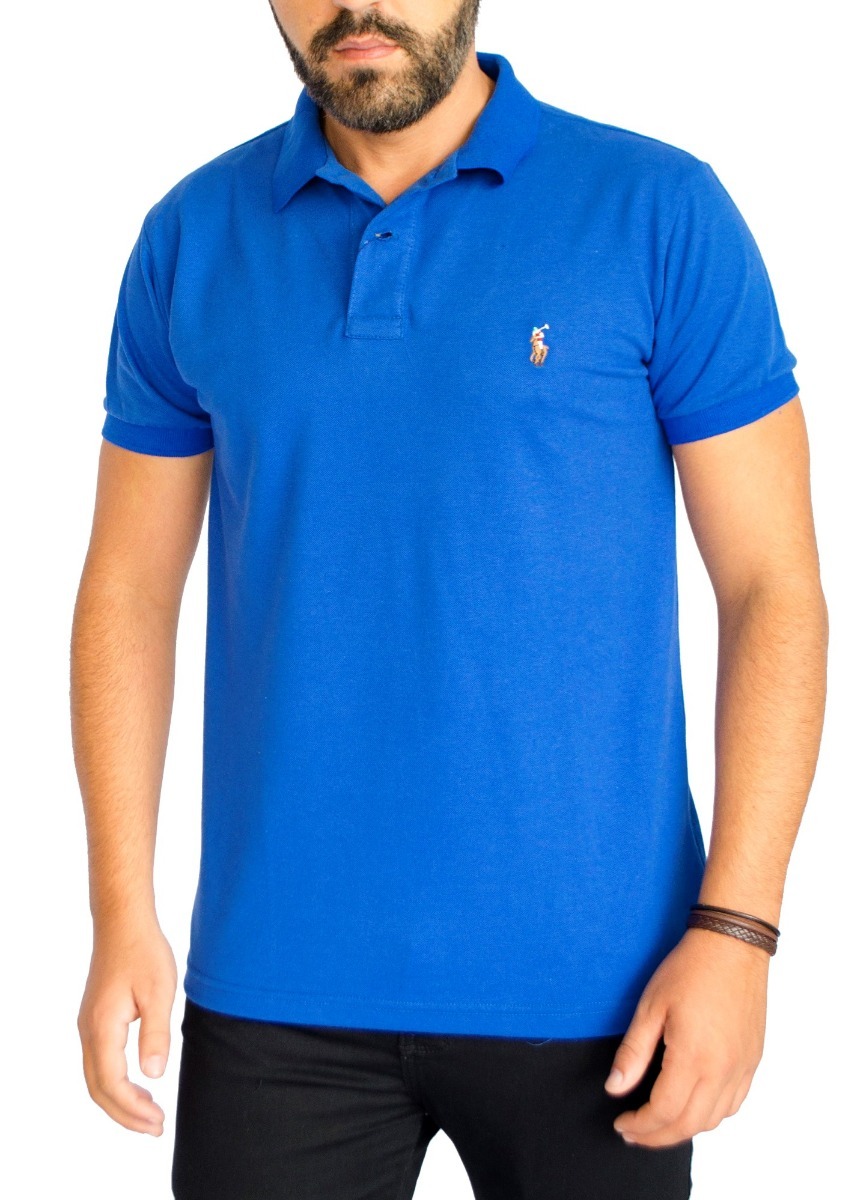 polo azul M-M com logo Crocodilo
